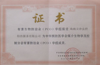 中國、珠海有害生物防治協會A級資質認證